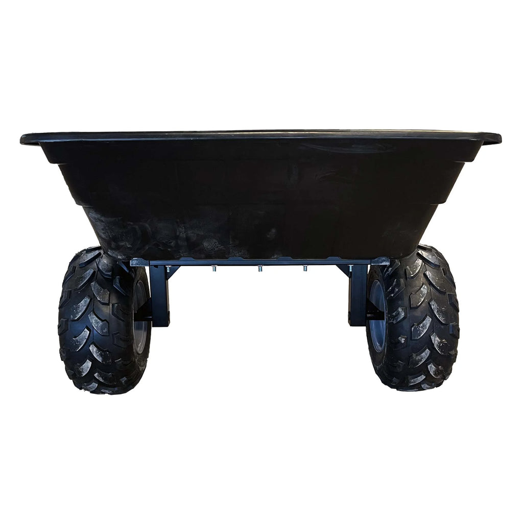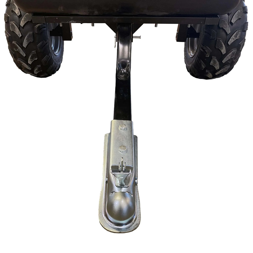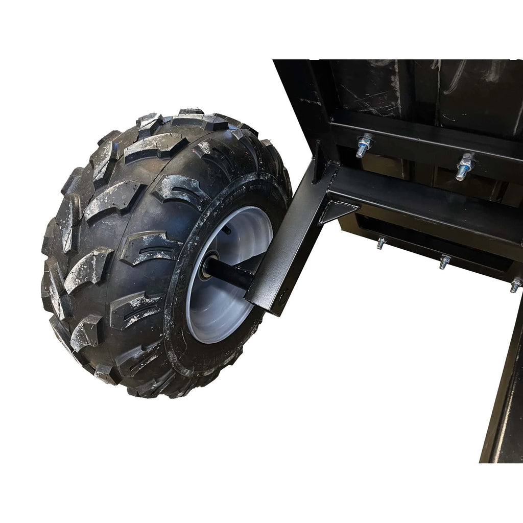 This versatile ATV/UTV utility trailer is built for rugged outdoor tasks. With a durable painted steel frame, it features a 500 lbs. load capacity and a spacious 10 cubic foot bin. The pneumatic 18-inch wheels and 45º rear dump design ensure easy maneuvering over tough terrain. Perfect for hauling dirt, firewood, and equipment, it fits a 2" ball coupler and offers 15" ground clearance. Ideal for farms, hunting, and landscaping.